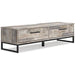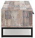 Part beach chic, part urban hip, this storage bench provides stylish storage at a comfortably cool price. The butcher block whitewash finish over replicated pine grain lends a richly relaxed aesthetic that suits your sensibility. Two smooth-gliding drawers neatly tuck away clutter. Dark pewter-tone drawer pulls and metal legs add a high-design element.