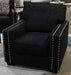 This stunning chair leaves a lasting impression. Its cozy cushions, chic coal-colored upholstery and striking nailhead trim are a perfect blend of comfort and contemporary design. And here’s the showstopper—ambient red, white and blue LED lighting along the chair's base. The look is simply wow.